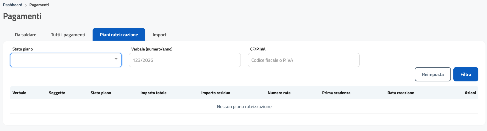 “Nessun verbale trovato con i filtri applicati”